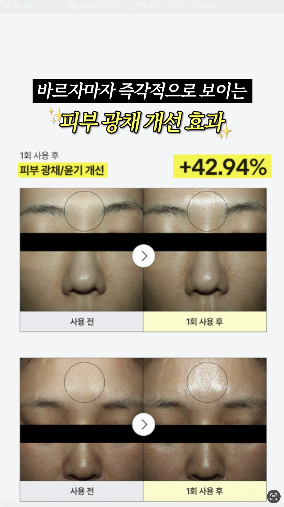 제품의 톤업 효과를 소구점으로 잡은 숏폼 작업물입니다.